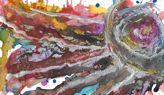 Comet Boom, original fluid art painting on photo paper, matted, 11x14 inches