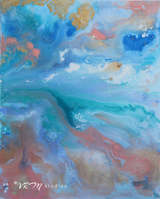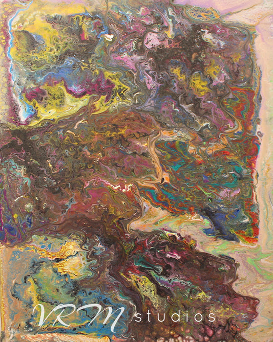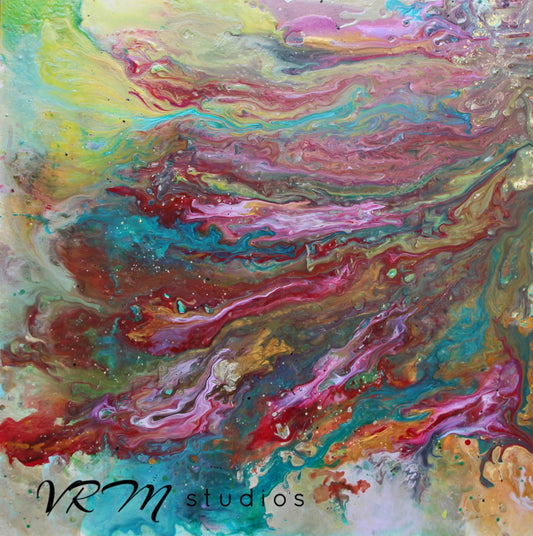 Trippy Bloom, original fluid painting on canvas, 30x30 inches